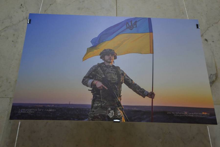 З Днем Соборності привітали воїни 20 бригади оперативного призначення «Любарт» 1 корпусу Національної гвардії України «Азов» відкриттям виставки в одеській мерії.