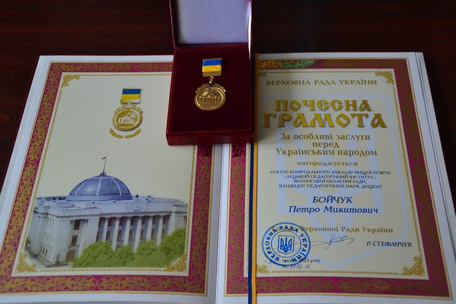 Ректор Луцького педагогічного інституту Петро Бойчук удостоєний Почесної грамоти Верховної Ради України.