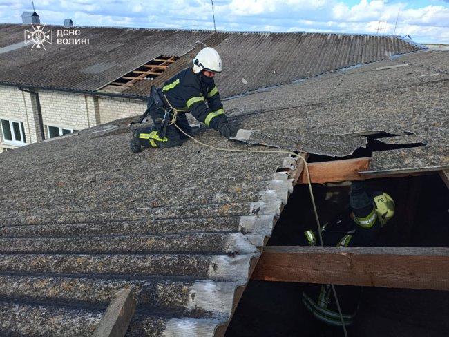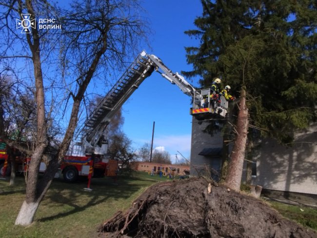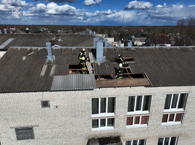 У селі Підцир?я Камінь-Каширського району рятувальники демонтували аварійні елементи покрівлі місцевого закладу, що могли впасти від поривів вітру. Загалом до робіт залучалися 16 чоловік особового складу та 4 одиниці спеціальної техніки.