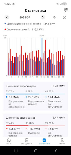 – У нашому випадку – це близько двох третіх від вартості електроенергії, яку споживає будинок, – переконалася Анна Юхимук. – Восени та взимку цей показник, звісно, нижчий. Та, коли дні без сонця, ми виходимо із ситуації завдяки тому, що станція гібридна і має, крім сонячних панелей, іще акумулятор на 50 кВт, який може заряджатися не лише від сонячних панелей, але й від загальної електромережі.