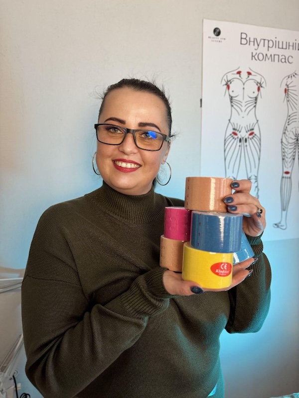 – Я вивчилася на психолога, візажиста, реабілітолога. Відкрила в Луцьку кабінет, де з використанням тейпування допомагаю людям покращувати самопочуття (так що заходьте – запис за номером 095 053 0998). Також надаю в кабінеті послуги реабілітології, візажу, арттерапевтичні практики з метафоричними картами та психологічними вправами.