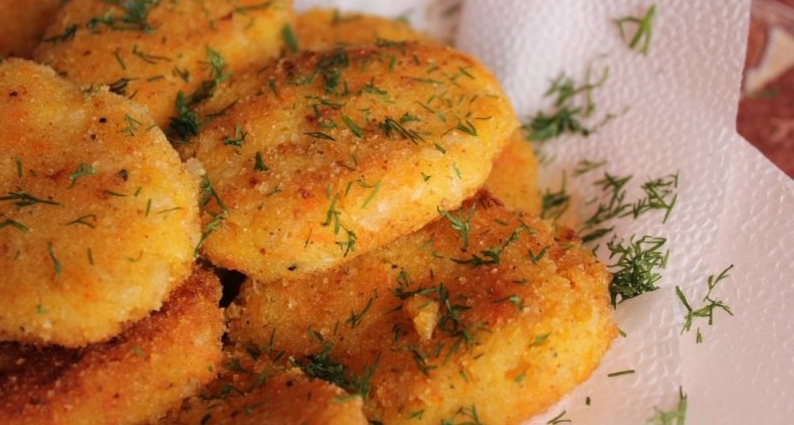 Змочити руки холодною водою і сформувати котлети. Обмокнути у панірувальні сухарі або в борошно і смажити на сковороді до золотистої скоринки з обох боків.