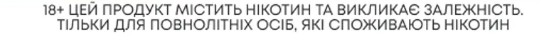 18+ Цей продукт містить нікотин і викликає залежність. Тільки для повнолітніх осіб, які споживають нікотин.