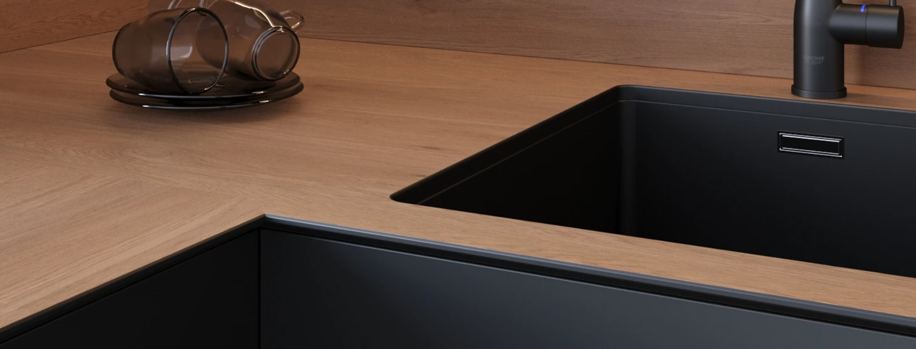 Раніше, щоб встановити стильну мийку під стільницю (щоб змітати крихти прямо в раковину одним рухом), ви мусили купувати дорогий камінь. В ДСП таку мийку врізати не можна — край розмокне.