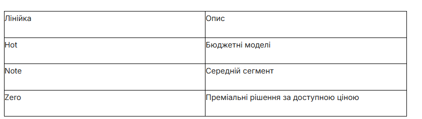 Порівняння основних моделей Infinix