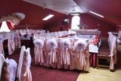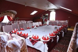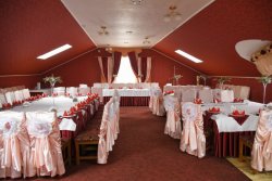 Затишний зал, розрахований на 50 гостей, прикрашений красунею ялинкою, та бенкетна, в якій зручно буде святкувати компанії до 20 людей.