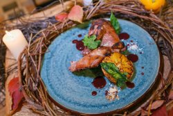 Авторське меню від шеф-кухаря, теплі салати, рибні та м’ясні стейки, вишукані десерти – тонке та виважене поєднання європейських та українських страв у «Black Gold» стане надзвичайно доречним на новорічному корпоративі.