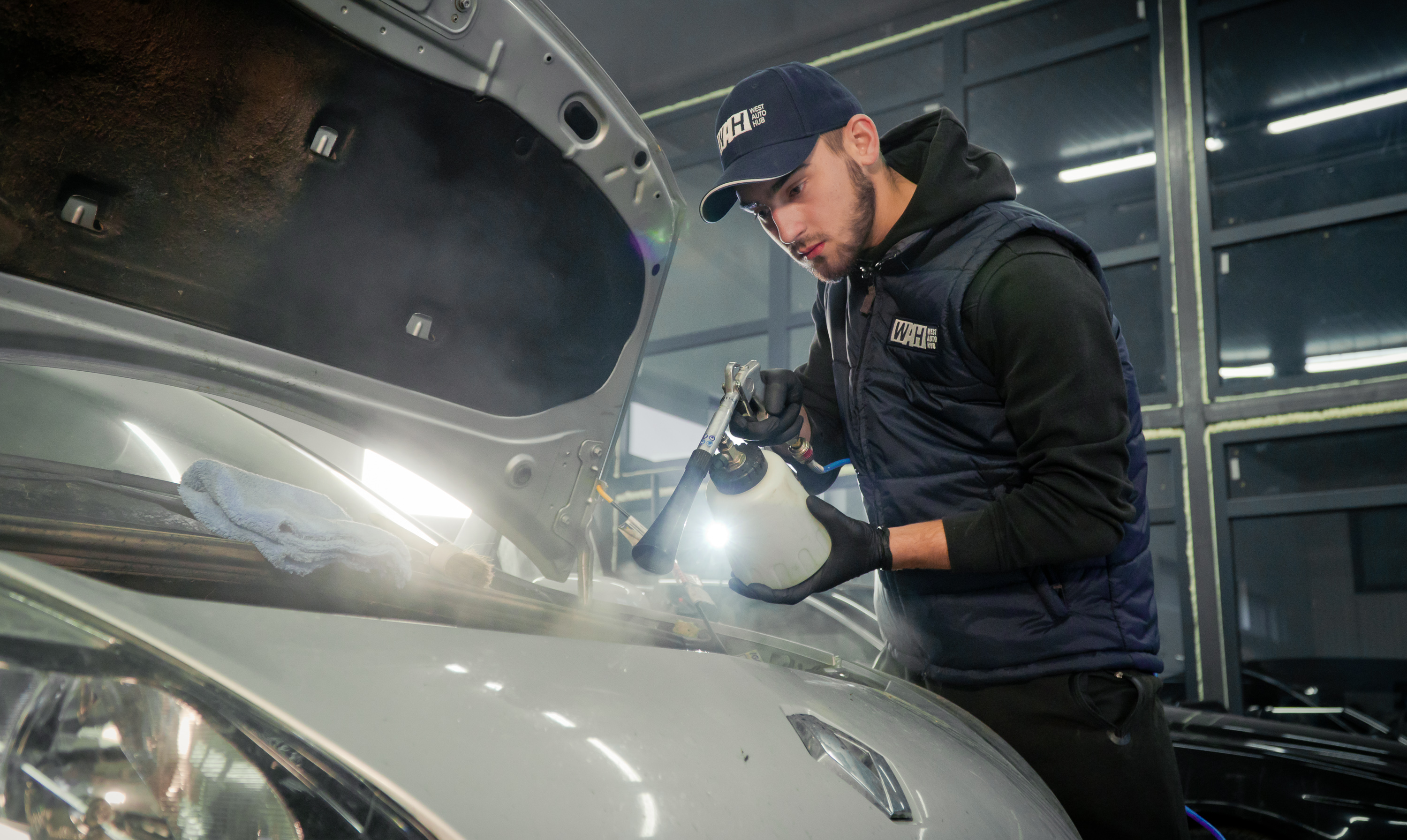 У нас є експрес-хімчистка і повна хімчистка салону. Експрес-хімчистка потрібна тим, хто прагне зовнішньої чистоти салону, усунення сильних забруднень, без чистки пройомів чи місця під сидінням тощо.