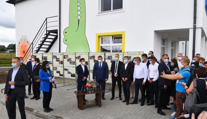 9 липня тут його чекали чиновники, будівельники, журналісти. За територією дитсадка зібралася група місцевих мешканців, які спостерігали за подією здалека. А по периметру розташувалися правоохоронці, які стежили за збереженням громадського порядку.