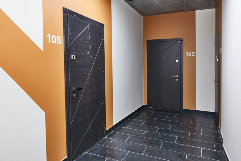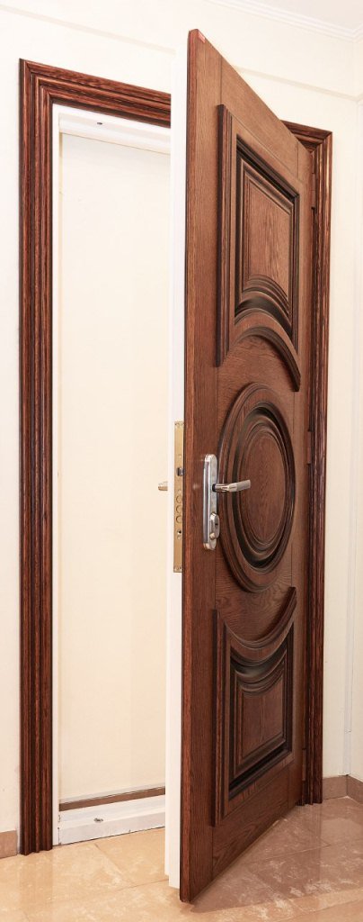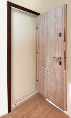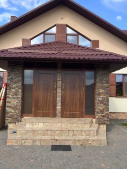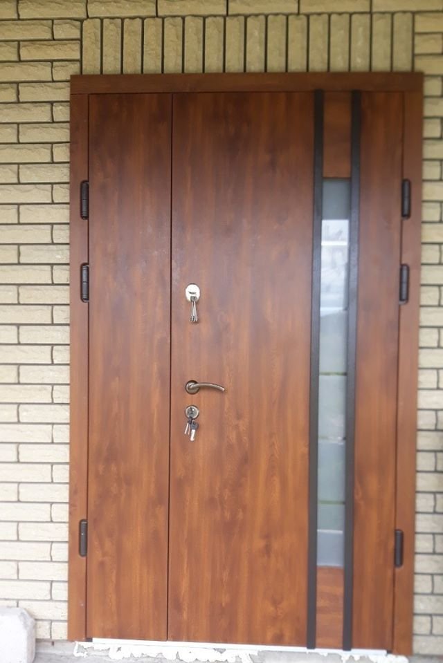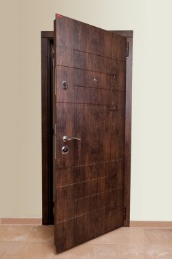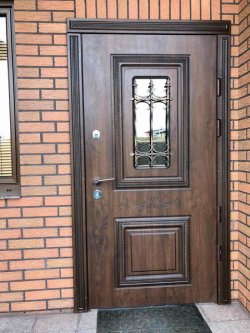 - Оздоблення дверей стійке до зовнішніх впливів. Так, «Сталь-М» оздоблює свої двері масивами різних порід дерев, а саме: дуб, ясен, червоне дерево, HPL-панелями, та металом в ПВХ-плівці, який дає можливість поєднати різний дизайн.