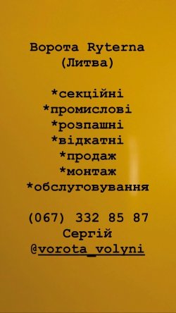 «Vorota Volyni» пропонують продаж та монтаж гаражних, в’їзних, промислових та ангарних воріт від литовського бренда Ryterna.