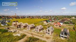 У будівельній компанії додають, що у котеджах завершують влаштування дерев'яних каркасних систем даху всіх будинків і монтують вікна.