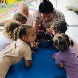 У дитячому садочку ж набирають невеличкі групи дітей до 12 осіб. Тут вони навчаються, розвиваються, розважаються, відпочивають та граються.