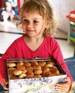 Тут вихователі разом з маленькими кондитерами печуть печиво, яке потім розмальовують та смакують.