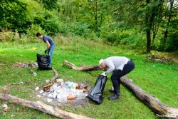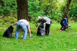 Усі одягнули засоби захисту, узяли мішки для сміття і розійшлися територією. Почали прибирання із відкритої галявини при в’їзді, але дуже скоро розсіялися хащами, де й визбирували «трофеї». Кажуть, чого тільки не траплялося, але кожен «набив» сміттям перший повний мішок вже менше, аніж за 20 хвилин.