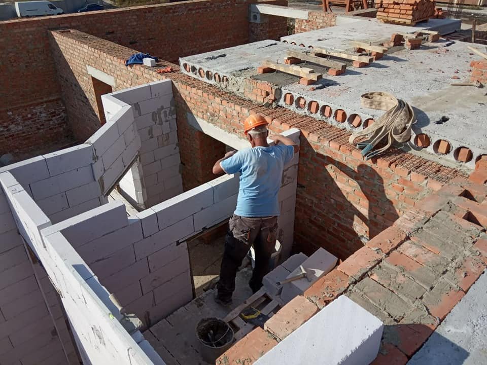 - 4 секція муруємо зовнішні та внутрішні стіни другого поверху, підготовка до перекриття залізобетонними плитами.