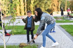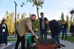 Після виступів керівники проекту запросили усіх висадити дерева. Це - вже теж традиційна акція для компанії “Інвестор”. Кожне свято та кожен захід обов’язково супроводжуються озелененням території.