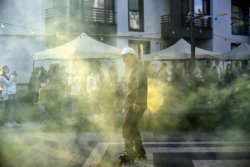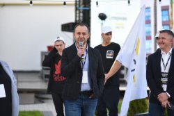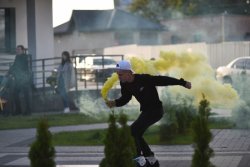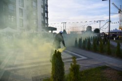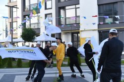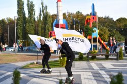 Офіційно відкрили захід… ролери! Команда Lutsk Style представила ролер-шоу із прапорами, складними трюками (перестрибували одне через одного!), а наприкінці - додали вау-ефекту за допомогою димових шашок жовтого кольору, який є брендовим у компанії “Інвестор”.