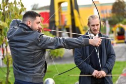 День суцільних пригод для дітей влаштували група аніматорів та організатори лицарських змагань для дітей та стрільби з лука. Тому, незважаючи на похмуру осінню погоду, настрій у найменших жителів комплексу був по-весняному піднесеним та щасливим. А щирі посмішки та влучні добрі жарти дорослих стали незмінним доказом того, що свято пройшло на «ура».
