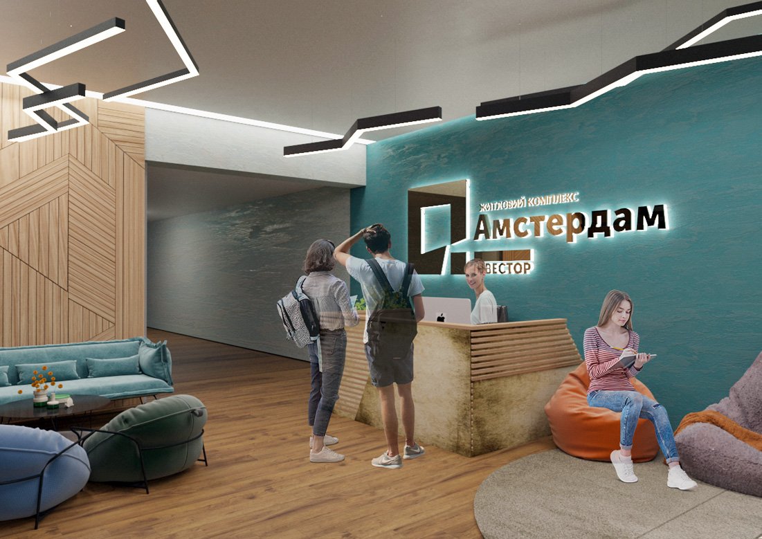 Особливе планування квартир в “Амстердамі” дає можливість для цікавих дизайнерських рішень. Варіант дизайну від Лабораторії сучасного дизайну isbelab
