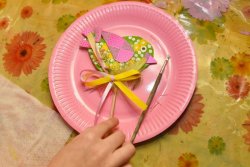 «Це було так весело, - ділиться своїми враженнями маленька Діанка. – Ми робили весняну пташечку. Вона блискуча, з квіточками та кружечками. Таке я робила вперше і мені дуже сподобалося, було цікаво».