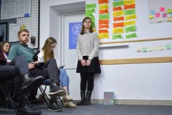 На заході, який організували 17 березня для учнів 11 класів та першокурсників, Андрій Разумовський поділився досвідом та шляхом у світ бізнесу. Учасники ставили багато різноманітних запитань. Найбільше їх цікавило, де директор будівельної компанії бере мотивацію, що його надихало на перші кроки в бізнесі, які були перепони, як він з ними боровся, як формував команду тощо.