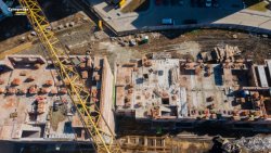 Перший під’їзд уже повністю змурований, тут встановлюють вікна та розводять електрику. У другому під’їзді зведено 7 поверхів, у третьому і четвертому - розпочинають третій поверх, а в п’ятому йдуть фундаментні роботи.