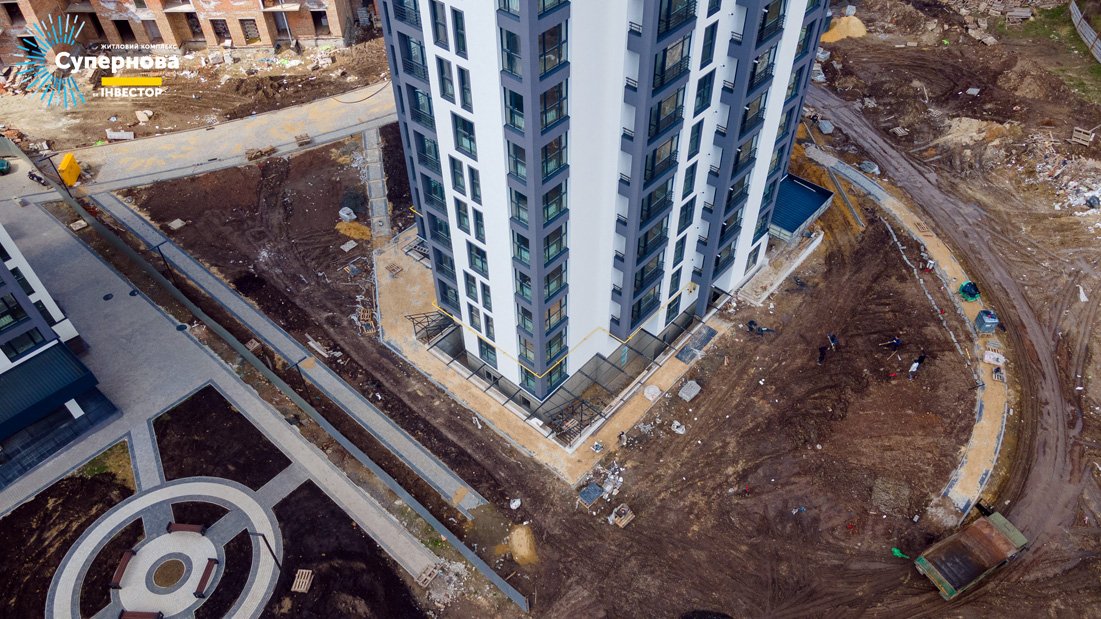 У 5-му будинку ЖК “Супернова” завершили внутрішні роботи в квартирах, дороблюють оздоблення у під’їздах та проводять благоустрій території. Також ведеться будівництво “великого” будинку на 6 під’їздів.