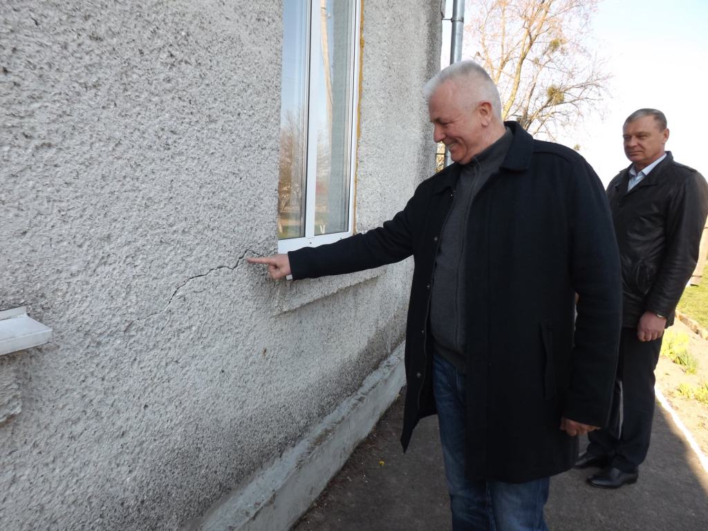 Голова Луцької районної ради Олександр Омельчук, оглянувши приміщення школи, наголосив, що навіть неозброєним оком видно, що школа має нахил.