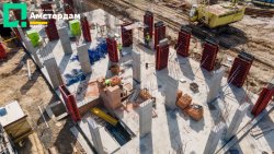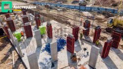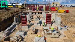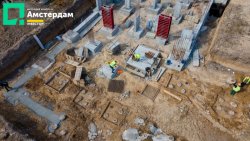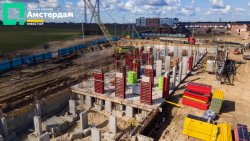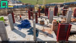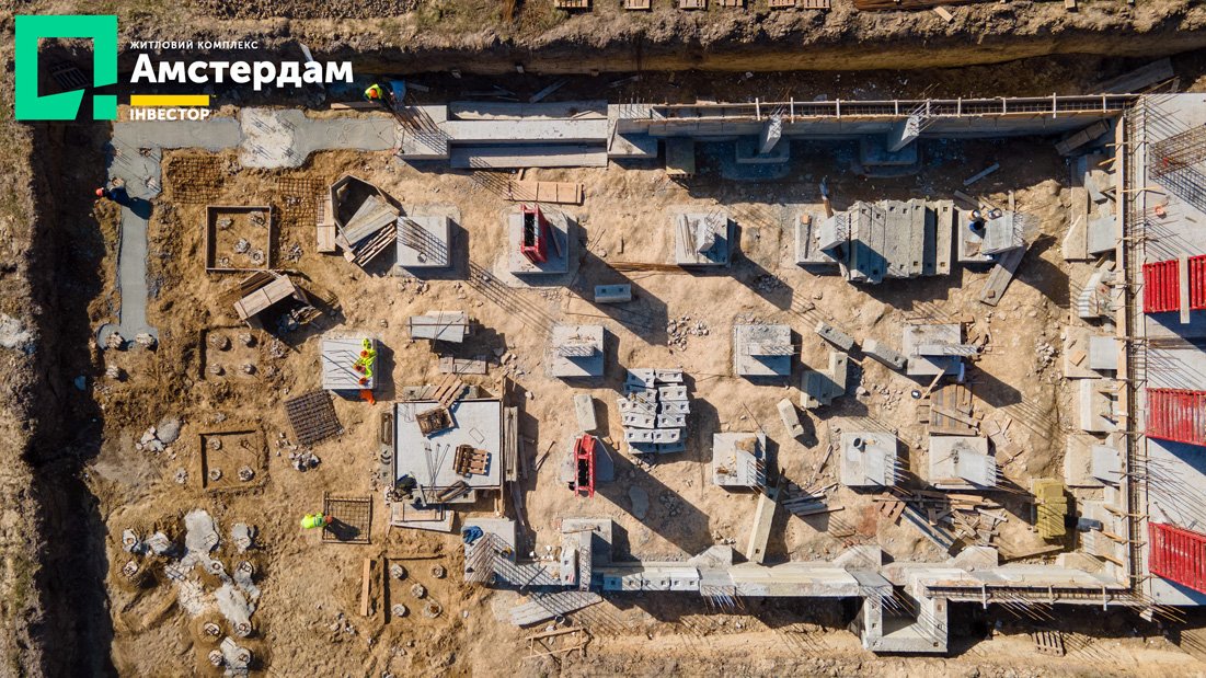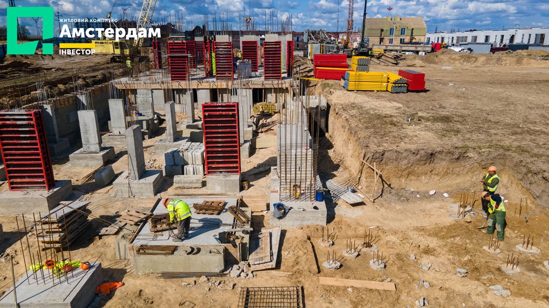 У трьох під’їздах ЖК “Амстердам” уже завершили фундаментні роботи та приступили до спорудження пілонів. Як виглядає цей процес - можна детально побачити у фотозвіті із будівельного майданчика.