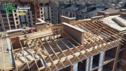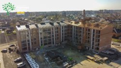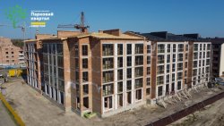 Наразі в 1 під'їзді в квартирах штукатурять стіни, в 2-му - завершують розводку електрики, у 3-му - монтують вікна і роблять крокви для покрівлі, а в 4-му - виконують стропільну систему даху.