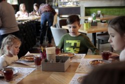 "У нас часто проводять такі масові корпоративні заходи. Ми дуже любимо дітей і пропагуємо сімейні цінності. Десь два роки тому ми вирішили привідкрити діткам очі на те, що таке ресторан, які професії є в ресторані, щоб вони собі орієнтувалися на майбутнє. І тоді в нас виникла ідея проводити такі екскурсії рестораном. Головною ідеєю цього об'єкту було створити місце, куди можна прийти з родиною на вихідні - поїсти піцу, відпочити. Тут зроблено все для відпочинку саме сімей - щоб вони могли прийти, видихнути, і бути, як вдома", - говорить Поліна Хорзова.