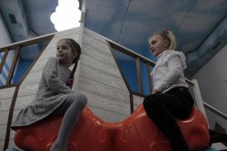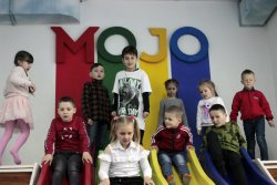 Поки діти розважалися, мами наймолодших учасників заходу сиділи поруч і уважно за всім спостерігали. Мама двох дівчаток Марія Талалай спостерігає, як молодша донька - трирічна Ярослава - енергійно спускається з дитячої гірки в ігровій кімнаті.