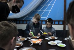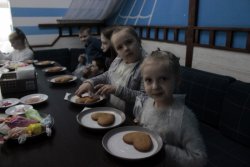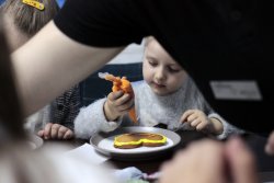Його перебиває маленька і жвава п'ятирічна Євгенія Бучик. Дівчинці не терпиться розповісти, які смачні котлетки готує її мама.