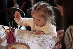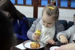 У заході взяли участь діти різного віку. Тут була малеча від трьох років - до одинадцяти. У програмі були ігри в дитячій кімнаті, власне виготовлення солодкого подарунка для мами, екскурсія закладом та смакування піци.