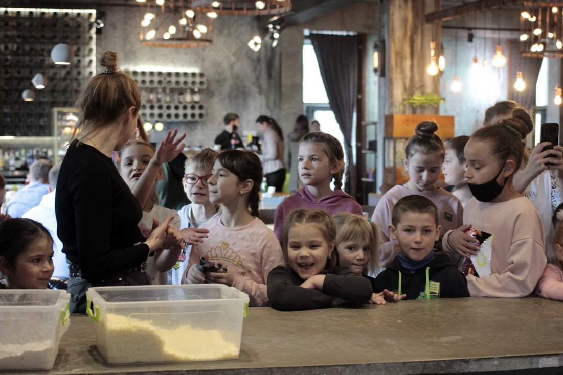 Паралельно із розмальовуванням печива проходила екскурсія закладом "Mojo Family". Її проводила Поліна Хорзова. Дітей відвели навіть на кухню, де показали, хто і як робить їжу, яку вони звикли тут куштувати.