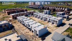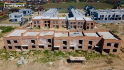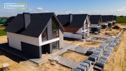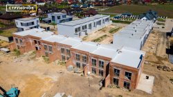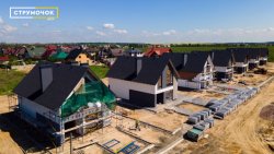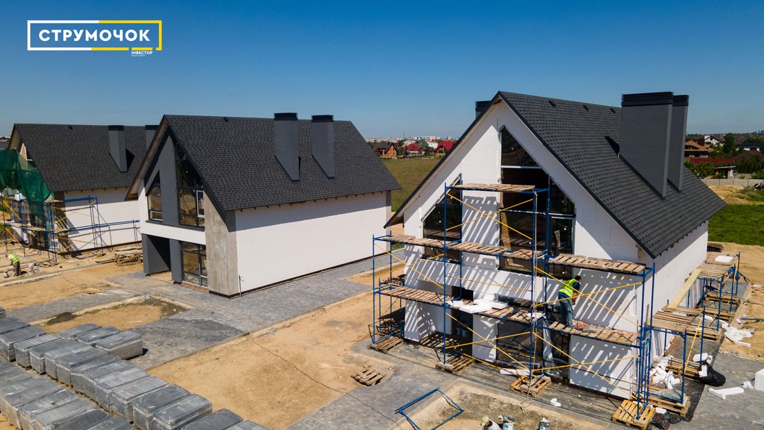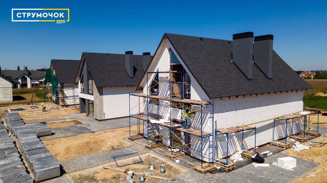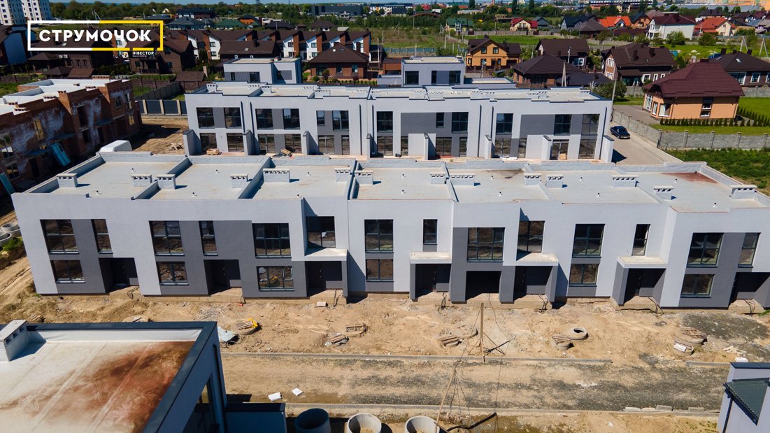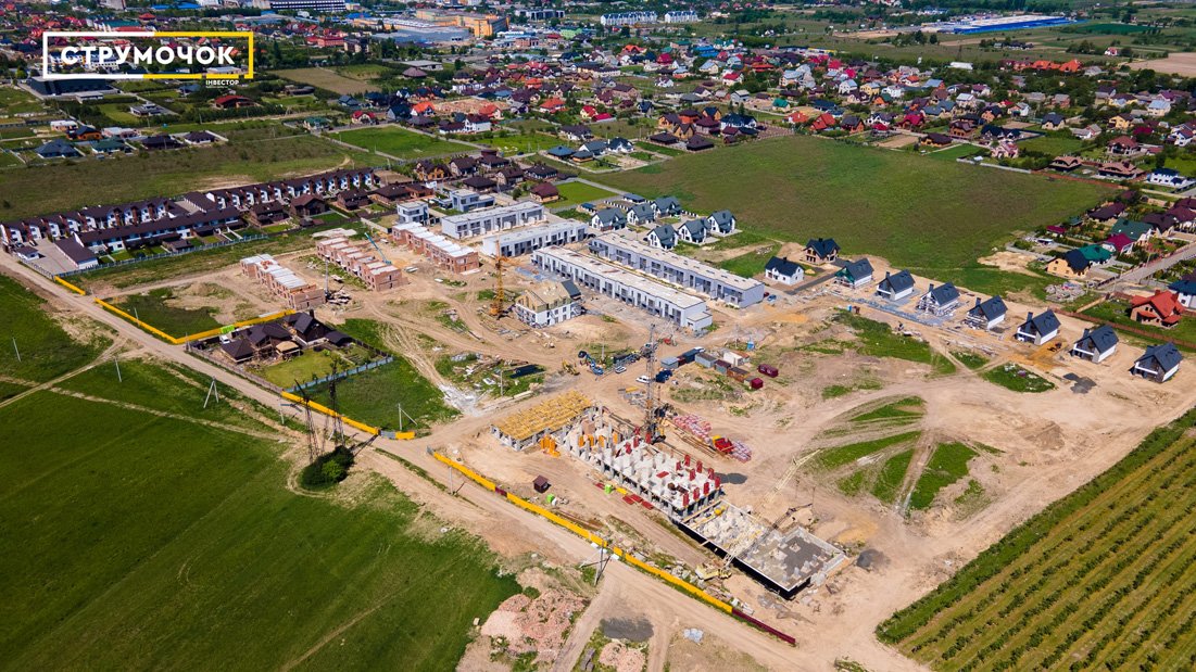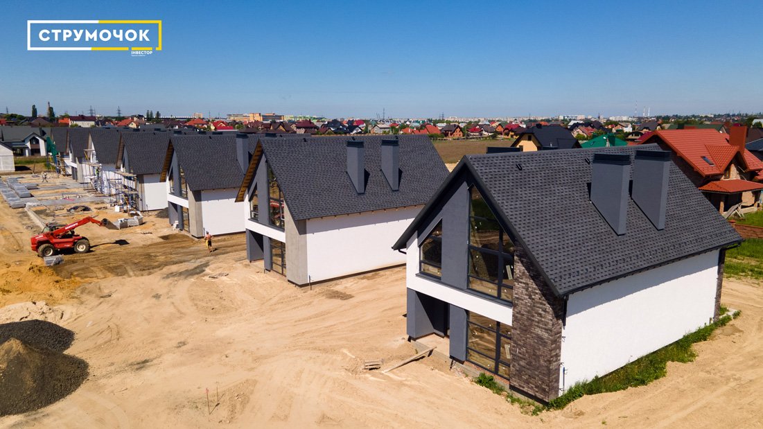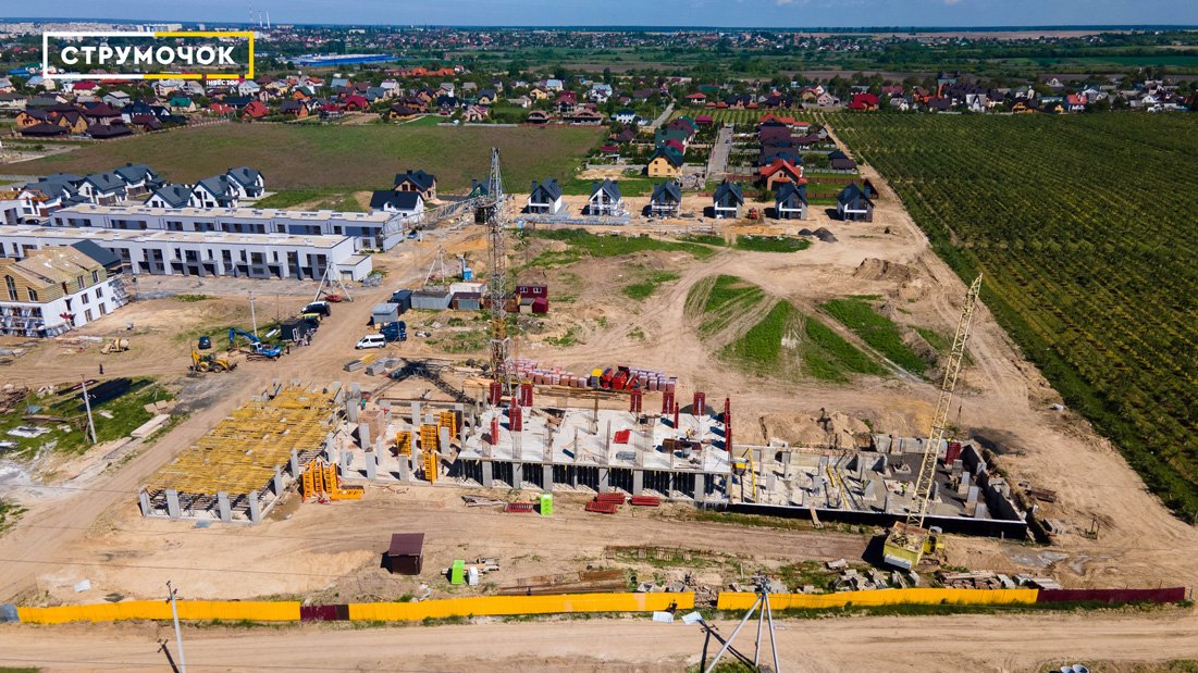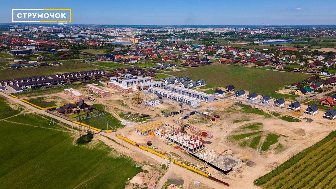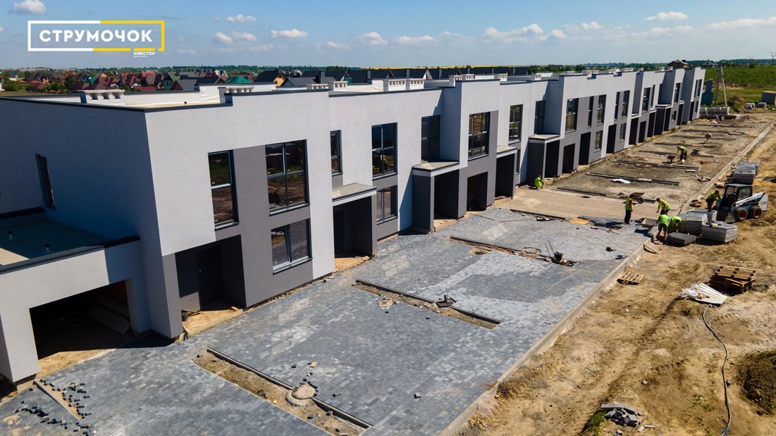Будівництво містечка із котеджів і таунхаусів ЖК “Струмочок” - на фінішній прямій. Тут облаштовують благоустрій, встановлюють опори зовнішнього освітлення. У кількох секціях таунхаусів завершують внутрішні роботи. У ЖК “Амстердам” приступили до зведення поверхів, в одному із під’їздів уже мурують другий поверх.