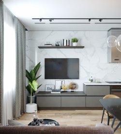 Особливістю квартири 73,51 м2 є великий гардероб (4,24 м2), роздільний санвузол, можливість облаштувати простору кухню-студію (24 м2), дві спальні (11,88 та 16,45 м2), а також лоджія (3,31 м2).