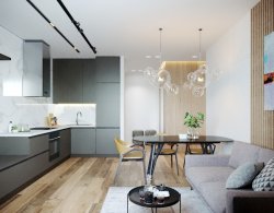 Акційні квартири мають площу 73,51 та 66,29 м2, розташовані в третьому під’їзді будинку і виходять на сонячну сторону. Завдяки панорамним вікнам це помешкання завжди буде світлим та теплим.