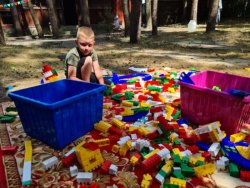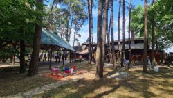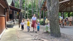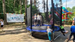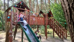 На території у є дитячий майданчик, великий надувний батут з гірками та менші – для стрибків, облаштована зона для гри конструктором, малювання та спортивних ігор. Дітям готують кухарі, а на десерт пригощають солодощами, навіть шоколадний фонтан з фруктами замовили, аби порадувати дітей.