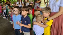 На запрошення організаторів привітати учасників таборування запросили представників Підгайцівської сільської ради, які привезли дітям фрукти, солодощі та різноманітні матеріали для творчості, адже вихованці недільної школи, окрім вивчення Святого письма, люблять виготовляти різноманітні саморобки.