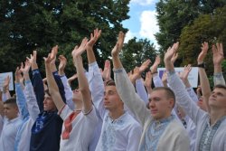 Розпочалася посвята з цікавого флешмобу. Цьогоріч українці відсвяткували 30 років незалежности нашої країни, тому студенти вишу утворили собою цифру 30, а всередині нуля зробили букву U – університет, Україна. Все це зафіксували з квадрокоптера.