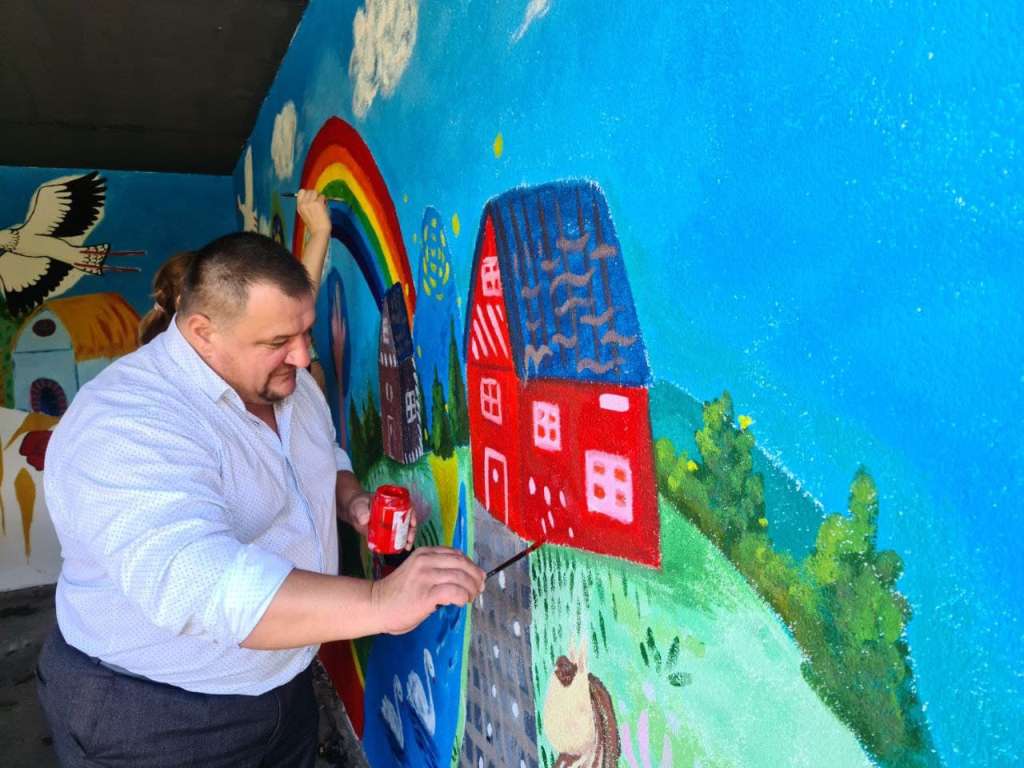 Заступник Підгайцівського сільського голови Валентин Приходько не втримався і теж зробив кілька мазків на малюнках та додав, що «казкова» зупинка зробить центр села ще привабливішим та веселішим.
