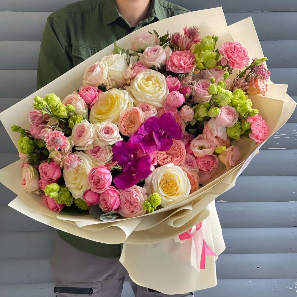 Наиболее подходящий вариант — композиции из пионов или роз. Неплохим подарком будут композиции из хризантем, которые отличаются стойкостью и способны долгое время простоять дома.