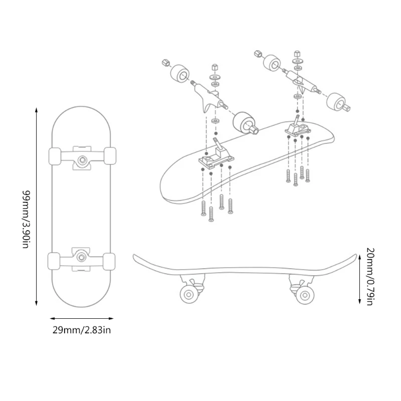 Розмір дошки для скейтборду визначається її шириною та довжиною. Зазвичай розмір вимірюється в дюймах, де стандартні розміри знаходяться в діапазоні від 7,5 до 8,5 дюймів у ширину та від 28 до 33 дюймів у довжину.