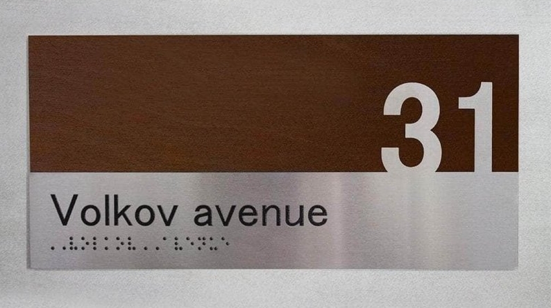 Дуже уважно поставтесь і до вибору кольорів. Особливо обережним варто бути з контрастністю й не використовувати відтінки, що не поєднуються між собою. Блискучі таблички, які відображають світло, не завжди доречні, адже їх буває важко прочитати.