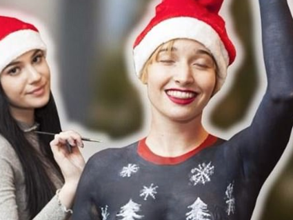Нещодавно кілька художників-професіоналів у Нью-Йорку «одягли» б’юті-художницю Джен Зейдель у червоні обтислі легінси зі сніжинками, в чорно-білий светр з новорічними ялинками та кольорові гетри «новорічного гномика» - пише life.ru.