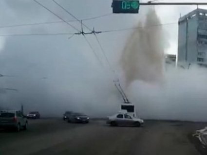 В результаті прориву труби з гарячою водою шестиметровий «гейзер» утворився посеред жвавої проїжджої частини в Кемерові – на розі Волгоградської вулиці і проспекту Леніна. «Це кінець світу, дивіться, що твориться», – емоційно прокоментував ситуацію водій, який проїжджав повз і вчасно включив камеру на телефоні.