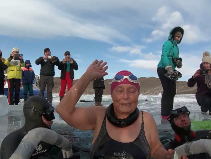 Мешканка Новосибірська пірнула під лід Байкалу і пропливла під ним 10 метрів. Перед запливом баба Люба тренувалася в Обському морі і подолала свій страх. Поруч із нею перебували аквалангісти, які страхували пенсіонерку під час запливу.