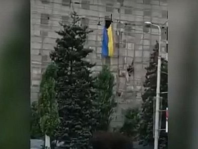 У центрі Донецька був вивішений синьо-жовтний прапор і голосно звучав гімн України.